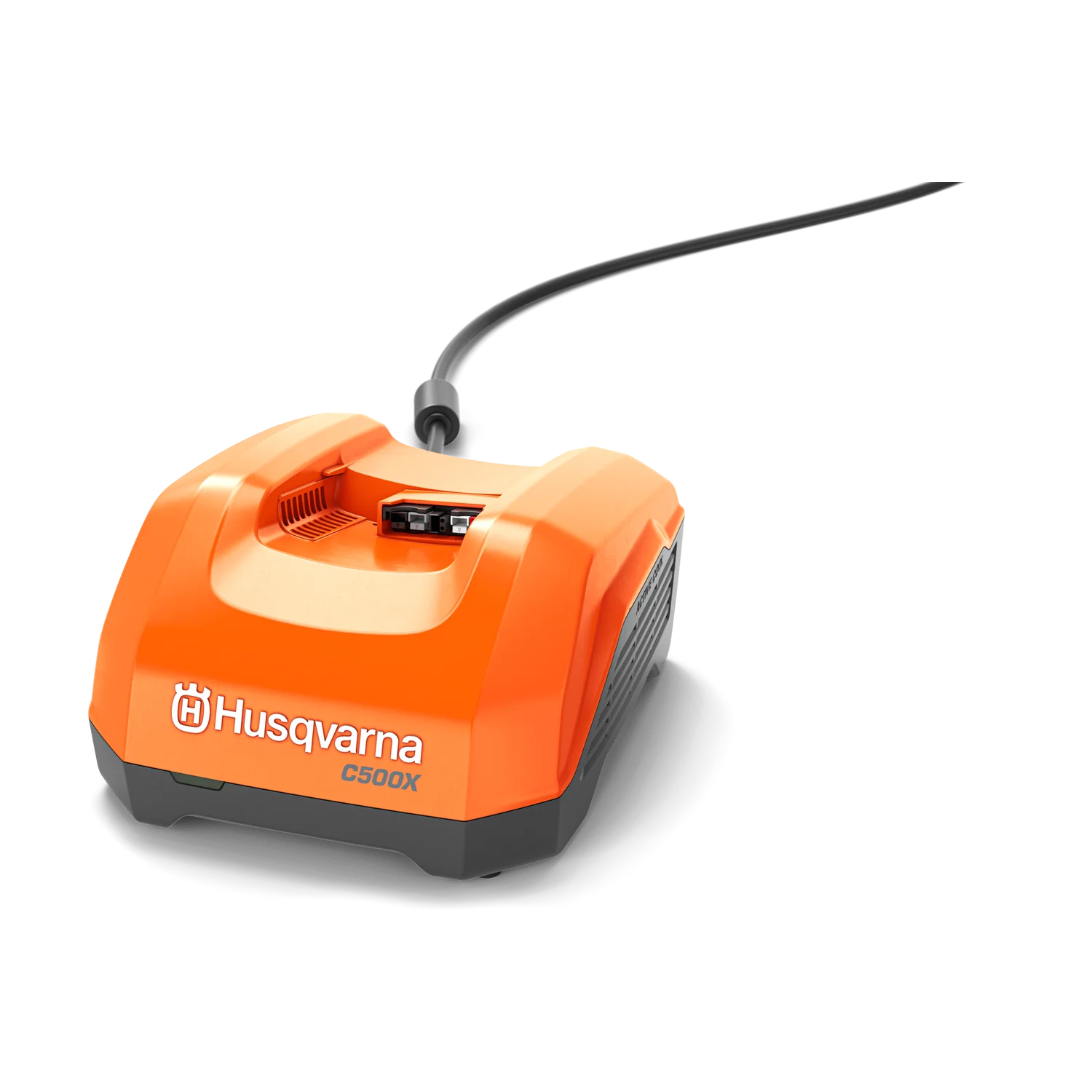 Husqvarnas laddare C500X är en effektiv laddare som är optimerad för snabb laddning av batterier i det flexibla 36 V-batterisystemet Husqvarna BLi-X. C500X har en laddningseffekt på 500 W och ActiveCool, ett aktivt luftkylningssystem med integrerade fläktar, som möjliggör snabb laddning utan behov av tidskrävande avkylningsperioder. Laddaren kan antingen placeras på ett skrivbord, en hylla eller enkelt monteras på väggen med en väggmonteringsplatta som finns som tillbehör.
